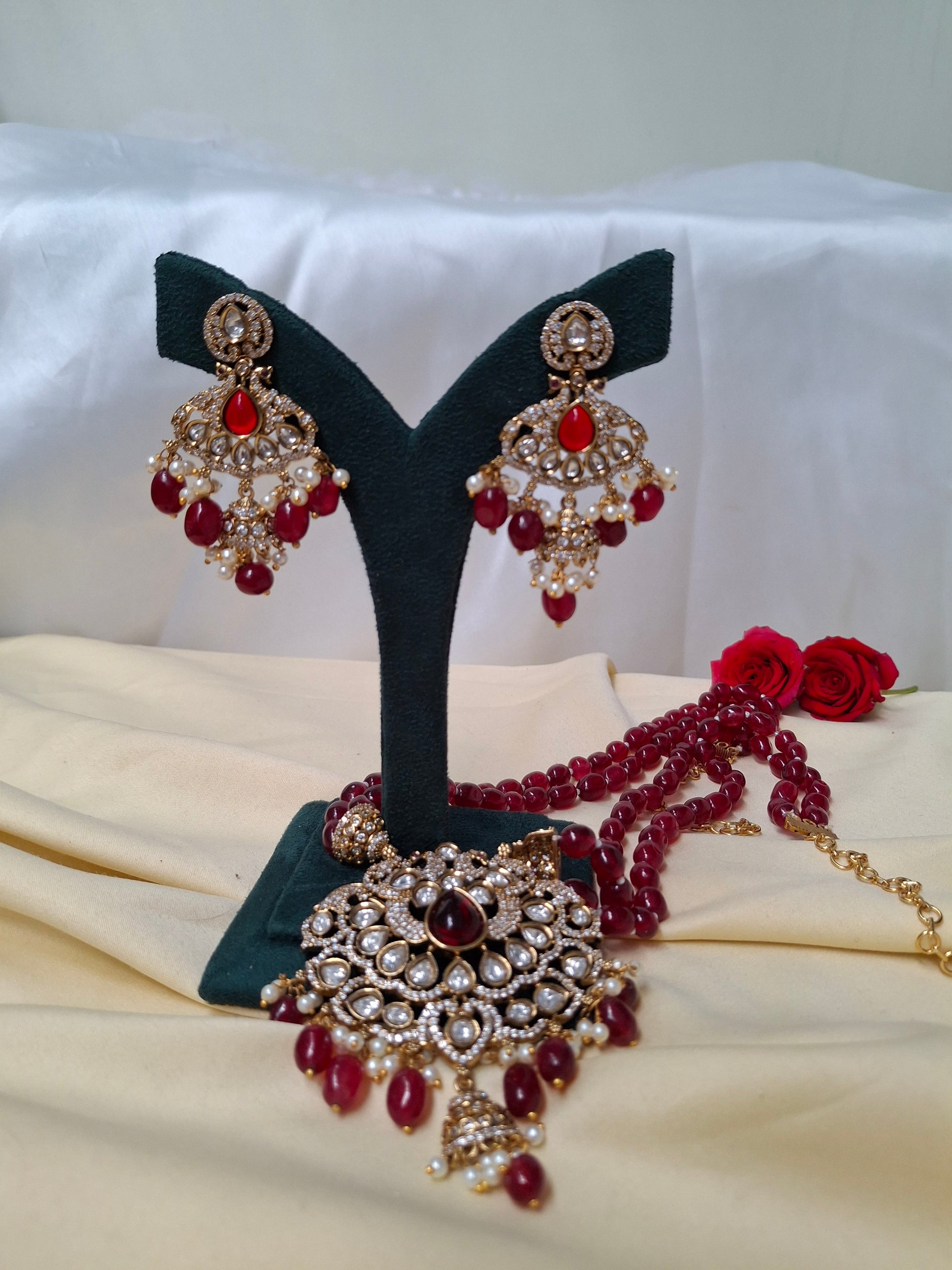 Elevate your traditional look with this luxurious red beaded necklace set, designed to make a bold yet graceful statement: